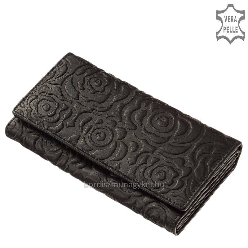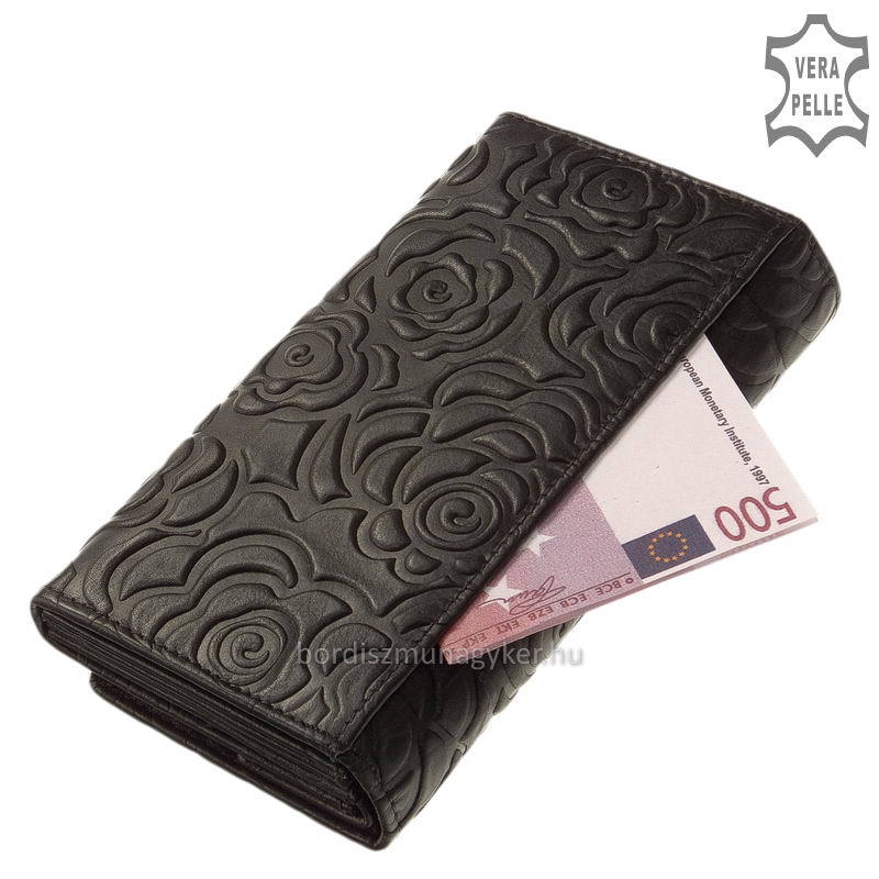 Mutatós rózsamintával díszített, nagyméretű női pénztárca kedvelt belső kialakítással. Finom tapintású, marha nappa bőrből gyártott bőr pénztárca.