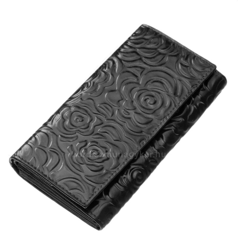 Portafoglio da donna in pelle con fantasia di rose in diversi colori con superficie lucida