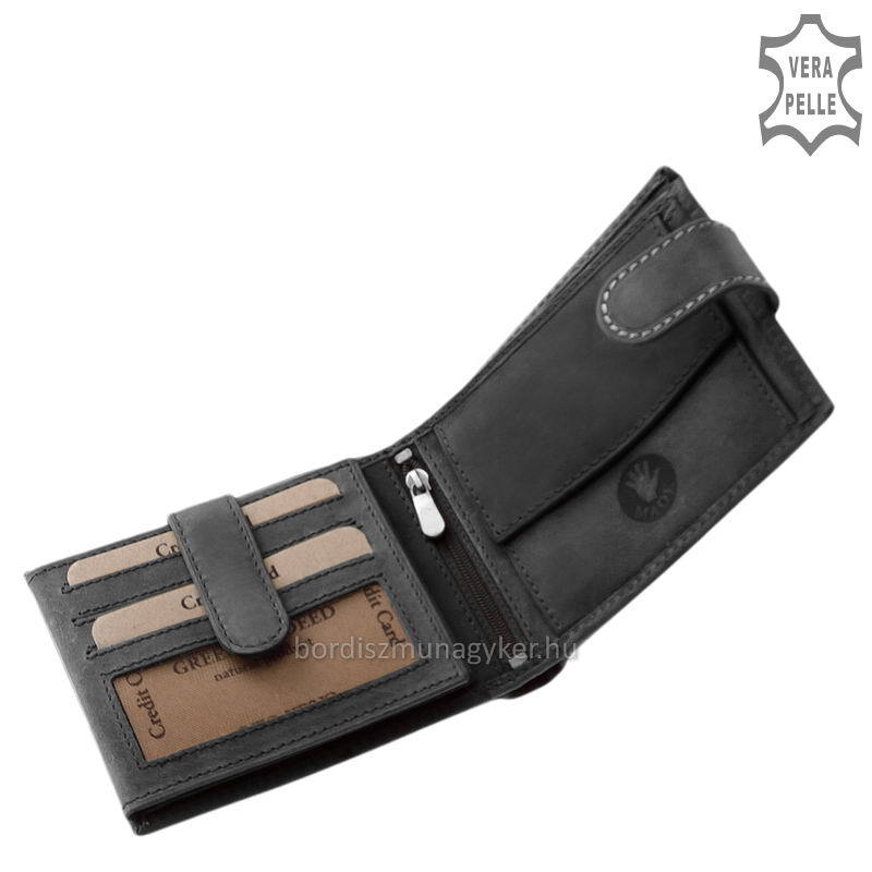Kiváló minőségű marhabőrből gyártott divatos bőr pénztárca, amely a GreenDeed márkacsalád egyik új dizájnnal tervezett termékeinek egyike.