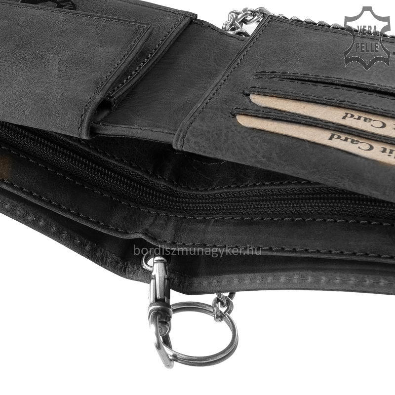 Exkluzív motoros bőr pénztárca. Anyaga kiváló minőségű, természetes kikészítésű marha bőr.