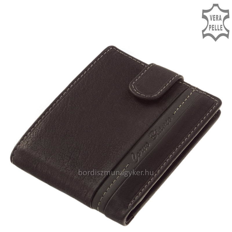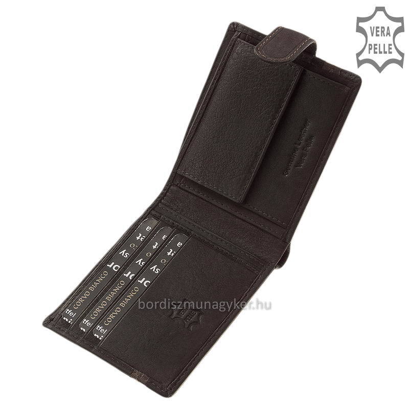 Er lässt sich mit einem praktischen, patentierten Band schließen. Das Material der Geldbörse ist auffallend echtes Rindsleder, das sich durch eine schöne, natürliche Struktur auszeichnet.