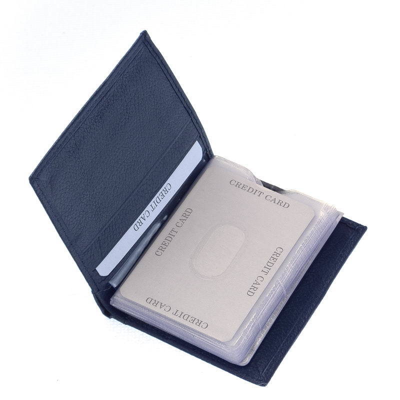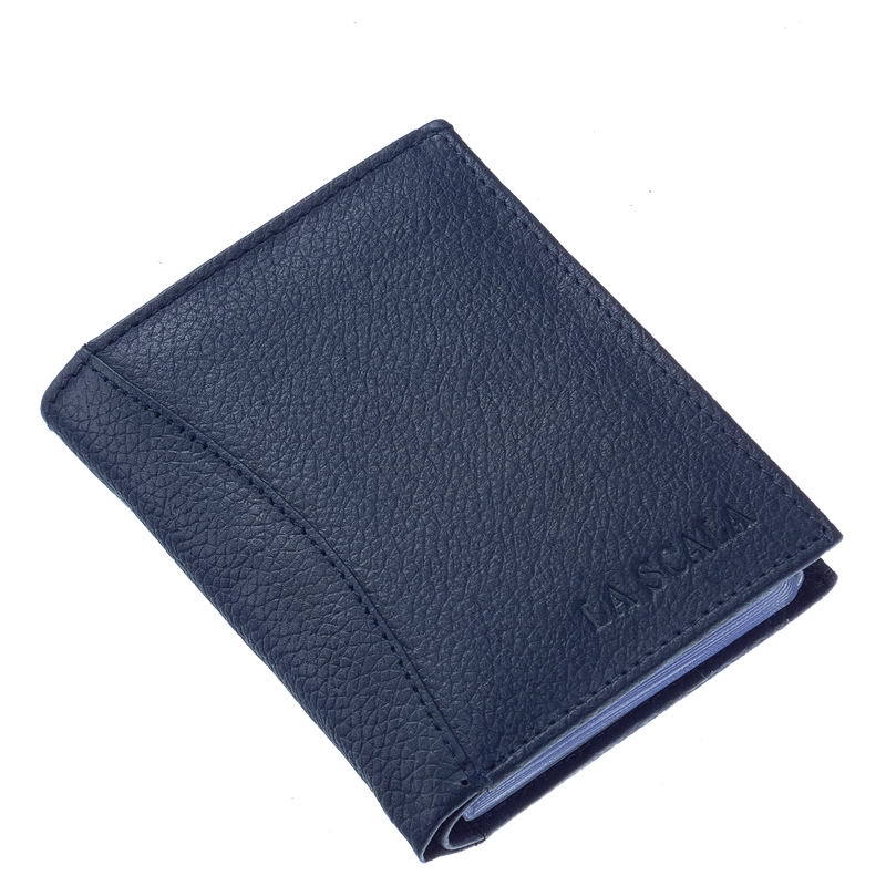 Practical card holder made of genuine cowhide, with LA SCALA brand on the cover, in blue.