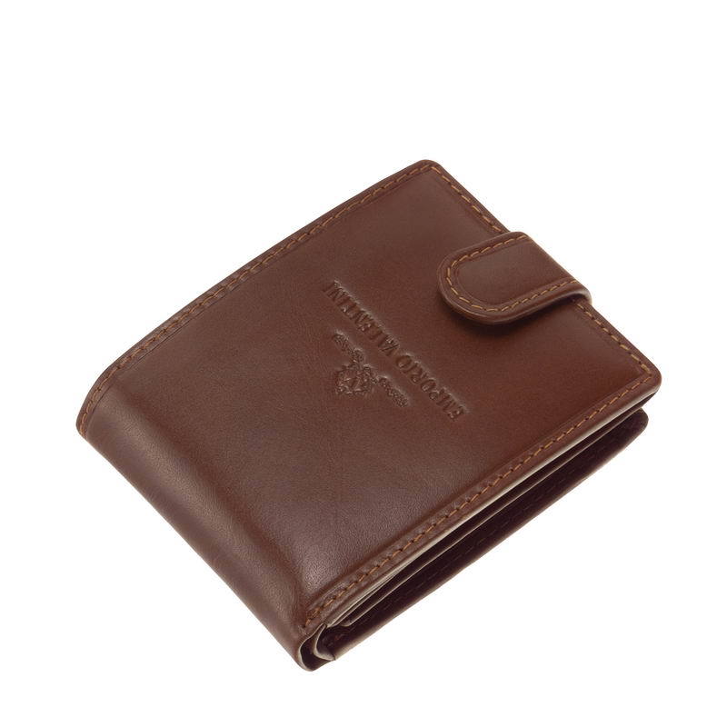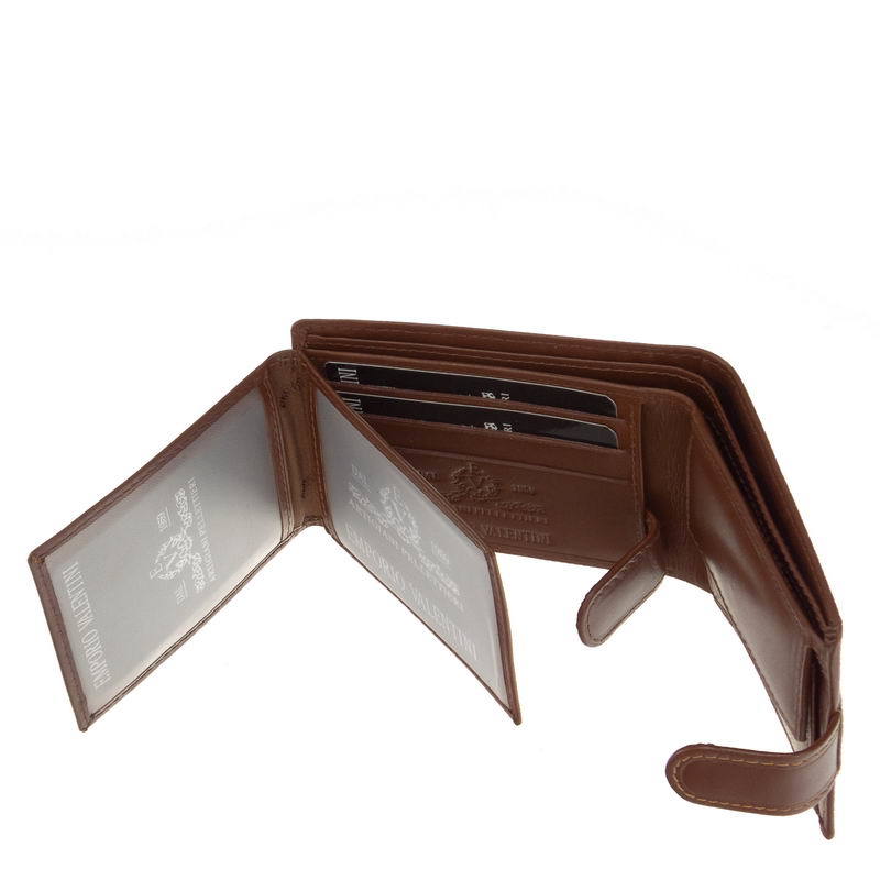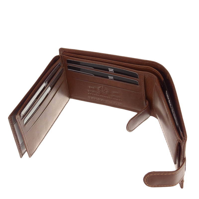 Malá pánska peňaženka Emporio Valentini s patentovaným vypínačom z kvalitnej hovädzej kože. Emporio Valentini na začiatku. S dvojdielnym držiakom na papierové peniaze a malým patentovaným uzamykateľným držiakom na mince. Vnútri je možné ho uzamknúť pomocou samostatnej prepínacej karty a držiakov súborov, ktoré je možné vyklopiť do strany.