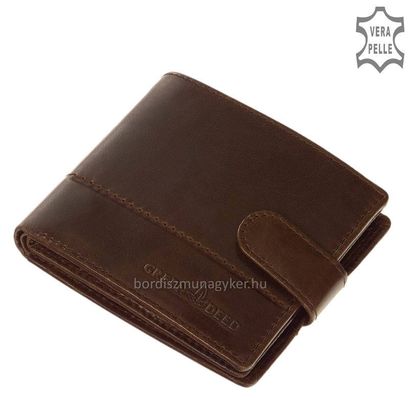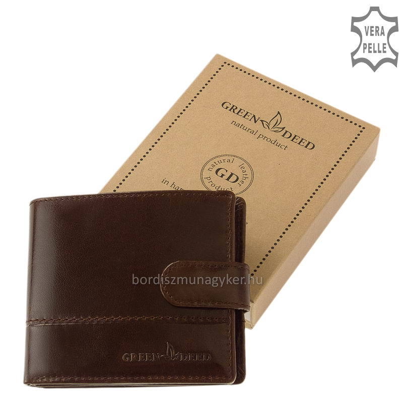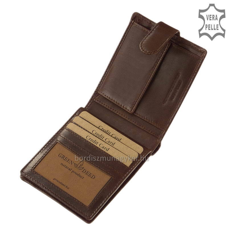 Elegáns férfi pénztárca exclusive bőrből, melynek fedelén egyedi GreenDeed márkajelzés figyelhető meg. Kisebb méretű pénztárca, akár farzsebben is hordható.