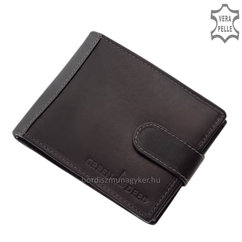 Stílusos bőrkombináció díszíti a GreenDeed márkás bőr pénztárca külsejét. Ezen kívül a pénztárca fedelén a márka felirata is látható igényesen a bőr felületbe nyomva.