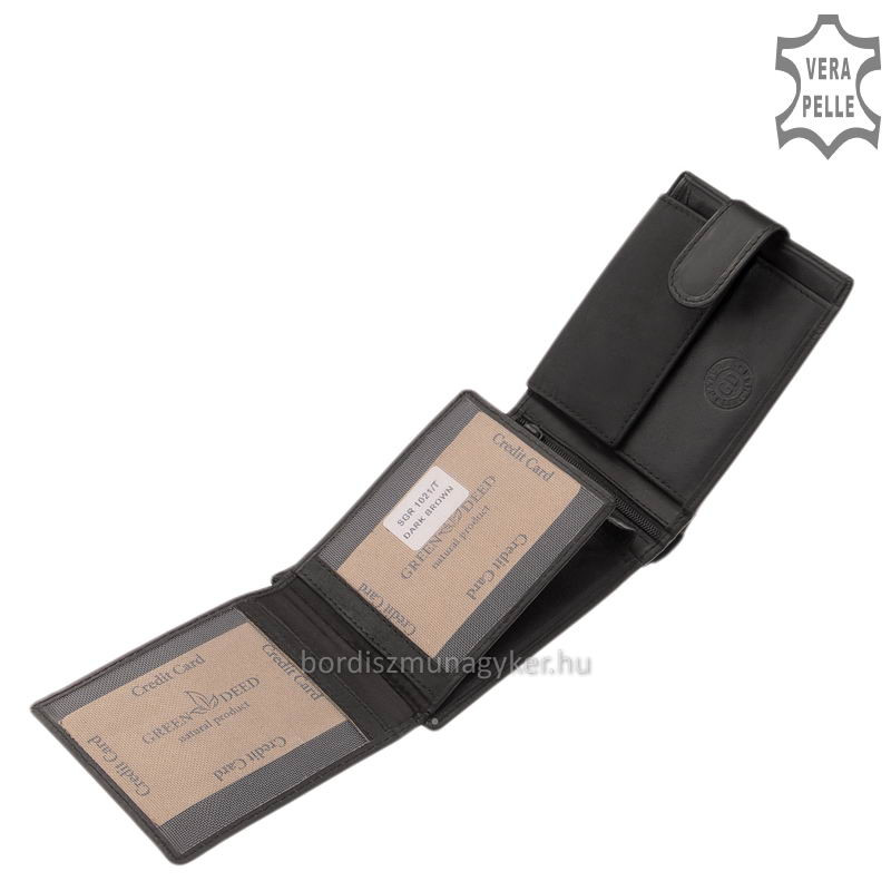 Férfi vásárlóink számára kialakított sportosan elegáns, GreenDeed márkás minőségi bőr pénztárca, praktikus belsővel, stílusos díszdobozos kiadásban.