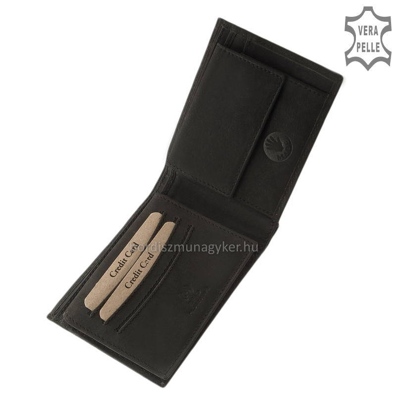 A pénztárca bőrének fekete színárnyalata a fényképhez képest világosabb vagy sötétebb színű is lehet a bőr jellege miatt.