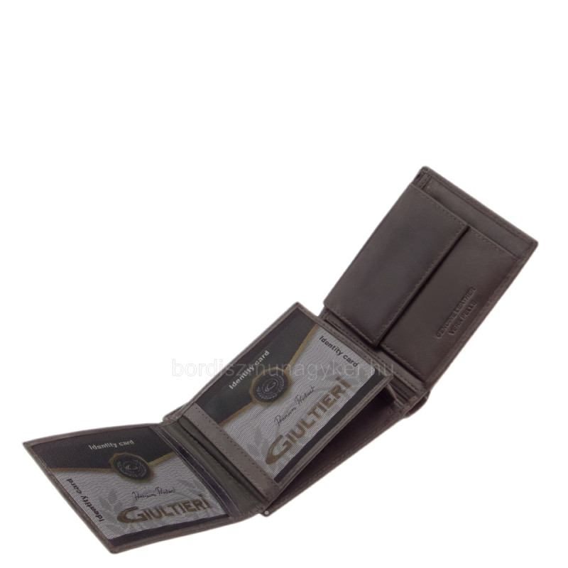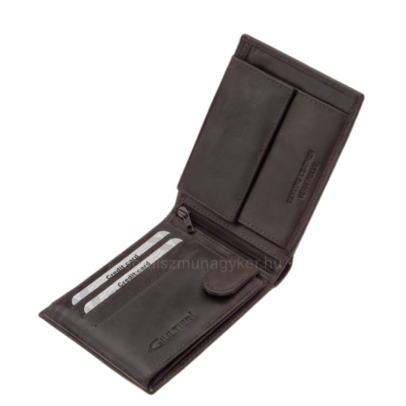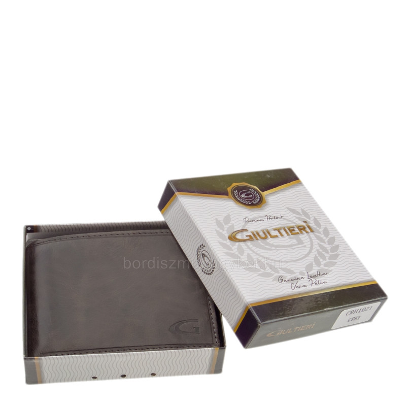 Az elegáns pénztárca külsején a GIULTIERI egyedi logóbenyomata látható, mely visszafogott, különleges külsőt ad a terméknek.
