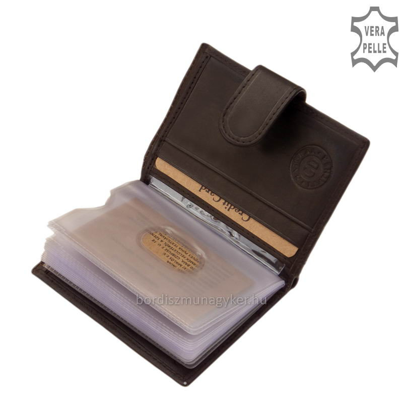 Елегантен, малък модел картодържател, който може да се носи удобно в джоб на панталон, който се предлага в няколко цвята, с кожена вложка в различен нюанс на гръбчето.