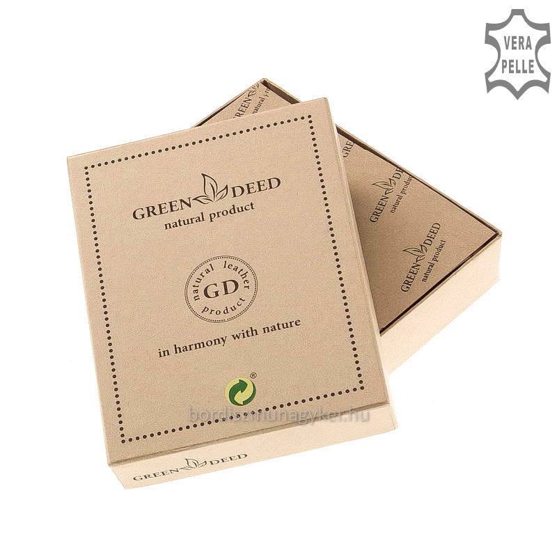 Портфейлът се доставя в естествена бежова хартиена кутия с надпис GreenDeed.