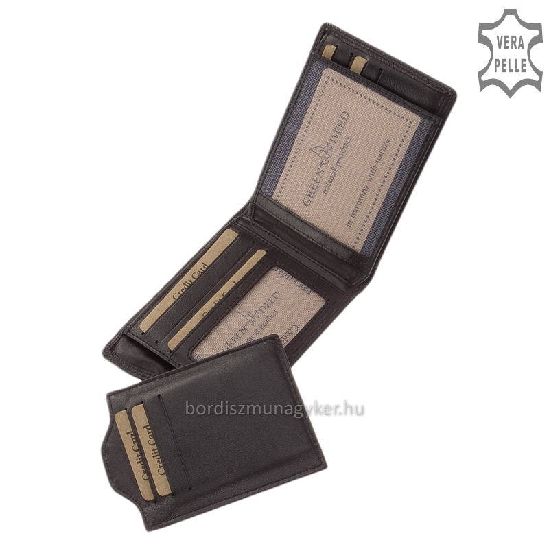 Портфейл от черна кожа GreenDeed, изработен от качествена телешка кожа за мъже. Неговата особеност е подвижната допълнителна вложка, която може да се използва перфектно самостоятелно.