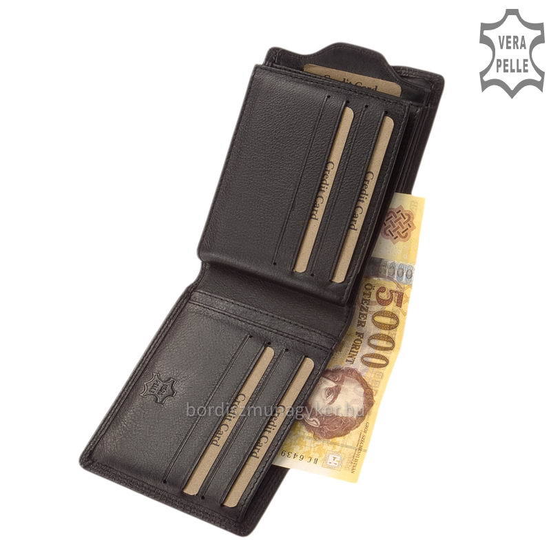 • Капакът и вътрешността на черния кожен портфейл са изработени с конец, който хармонизира с цвета на кожата.