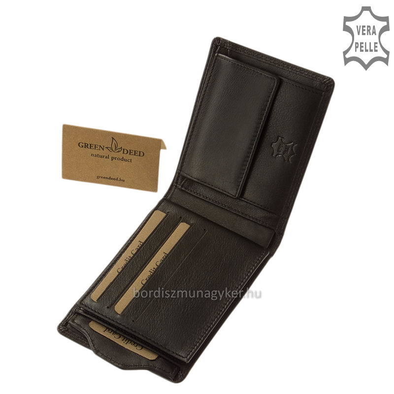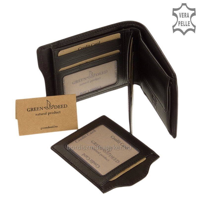 Висококачествен портфейл от телешка кожа за мъже с ефектен надпис GreenDeed на капака.