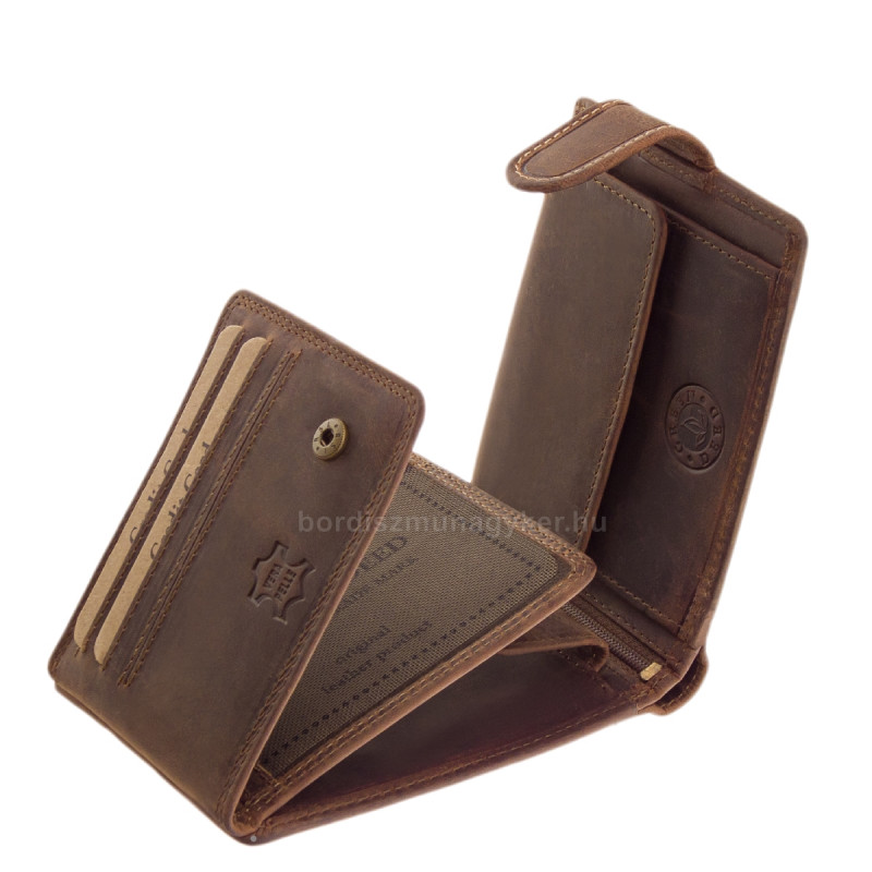 Мъжки портфейл с декоративна кутия, лого на GreenDeed, спортна "ловджийска" кожа отвън, която разбира се е висококачествена, естествена телешка кожа.
