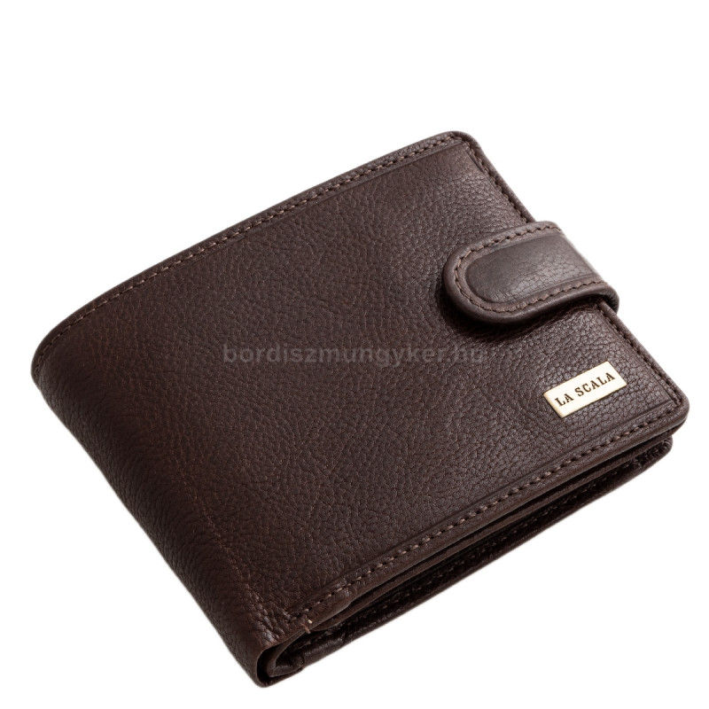 LA SCALA muški novčanik s metalnim logom , karakteriziran visokom kvalitetom izrade. Poklopac se može zatvoriti patentiranim jezičkom za prebacivanje. S dva držača papirnatog novca, držačem za novčiće ispod kojeg je formiran pretinac za arhiviranje. Džepovi za kartice i datoteke s zasebnim prekidačem unutra. Dodatni pretinac s patentnim zatvaračem u sredini.
