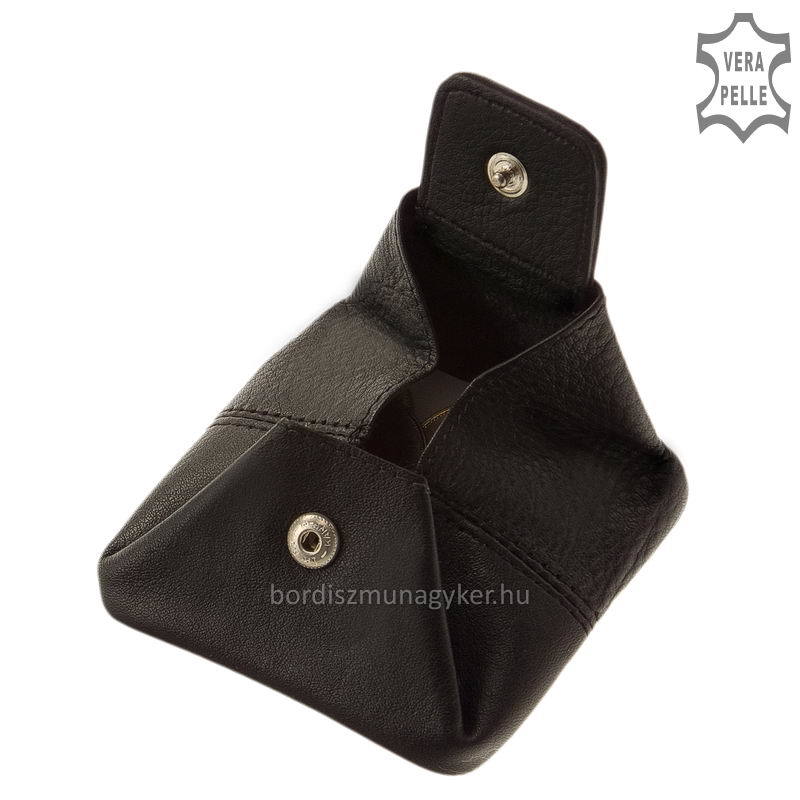 Kedvelt fekete színű aprópénztartó modellünk, mely jó minőségi marha nappa bőrből készült. Egyszerű, mégis hasznos termék a fémpénzek elkülönített tárolására.