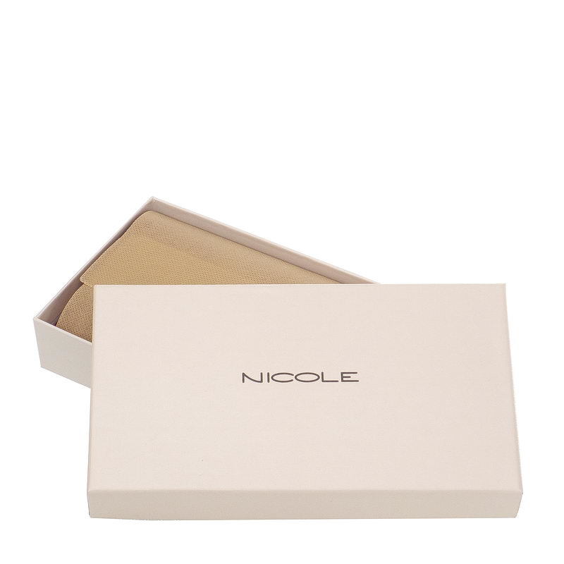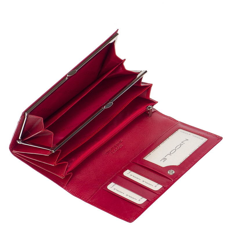 Exkluzívna dámska peňaženka z kvalitnej hodvábnej kože s vyrazeným logom na viečku. Veko je možné uzavrieť patentom. S tromi držiakmi na papierové peniaze a malým držiakom na mince so záhradou, vo vnútri rozdeleným na dve oddelenia. Vnútri je niekoľko priehradiek na karty a priečinky, z ktorých jedno je uzamykateľné na zips.