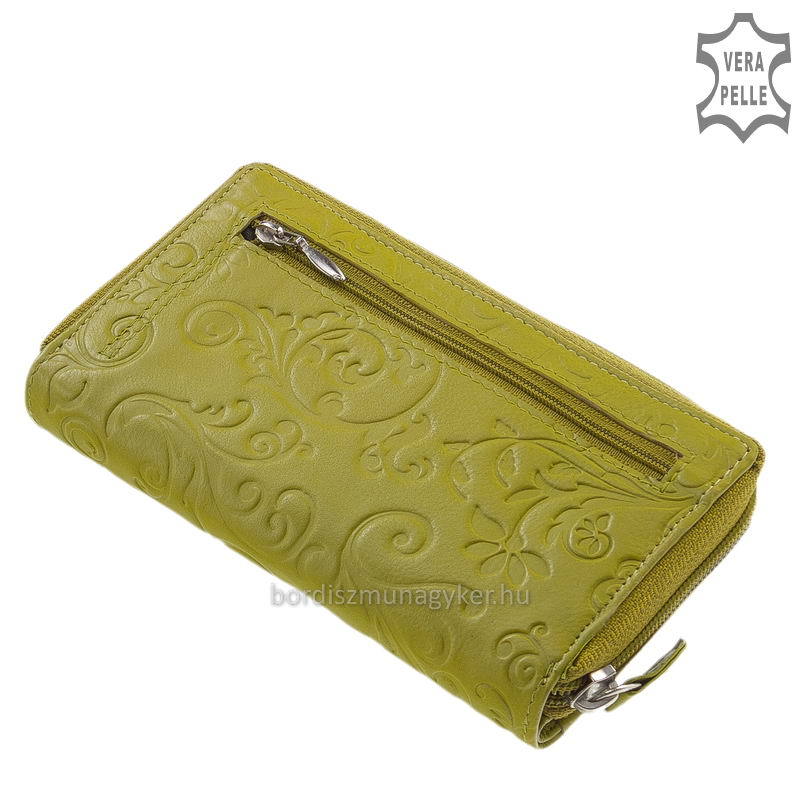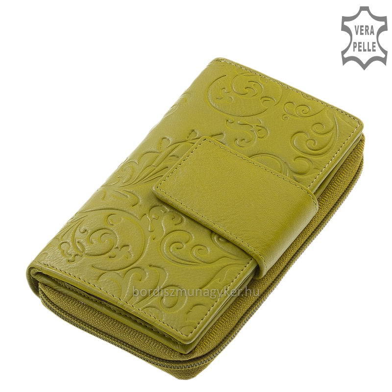 Portafoglio da donna realizzato in morbida nappa dal tocco piacevole, con un viticcio decorativo e stampa floreale sulla superficie, di colore verde. La parte del porta contanti può essere chiusa con una cerniera. Con vani portadocumenti all'interno. Dotata di grandi linguette di commutazione e porta lime bloccabili, la doppia linguetta di commutazione brevettata consente di regolare l'abbondanza del prodotto secondo necessità. Con un'ulteriore tasca con zip sul retro del portafoglio.