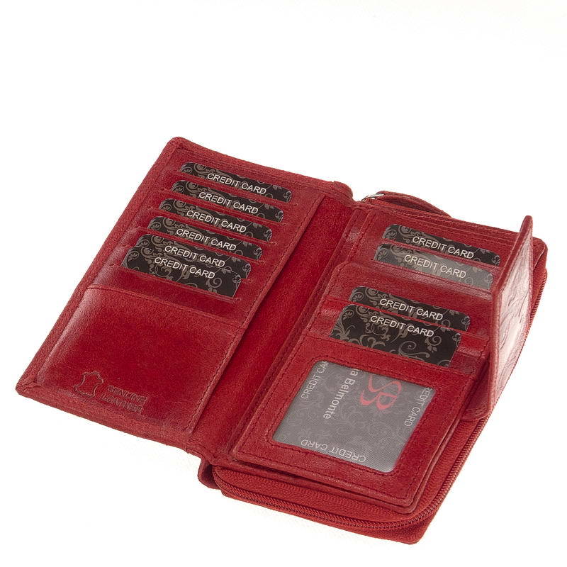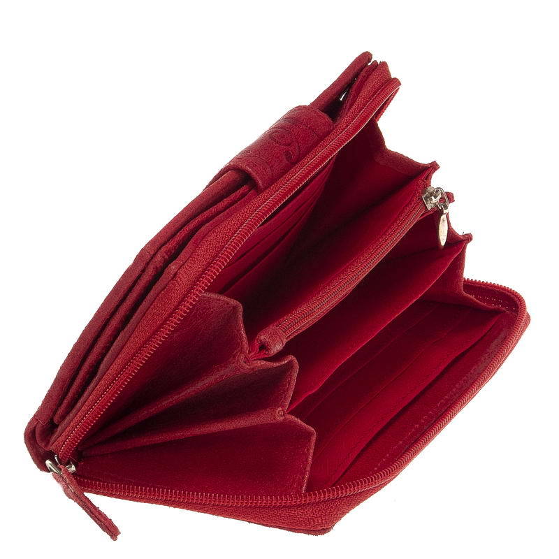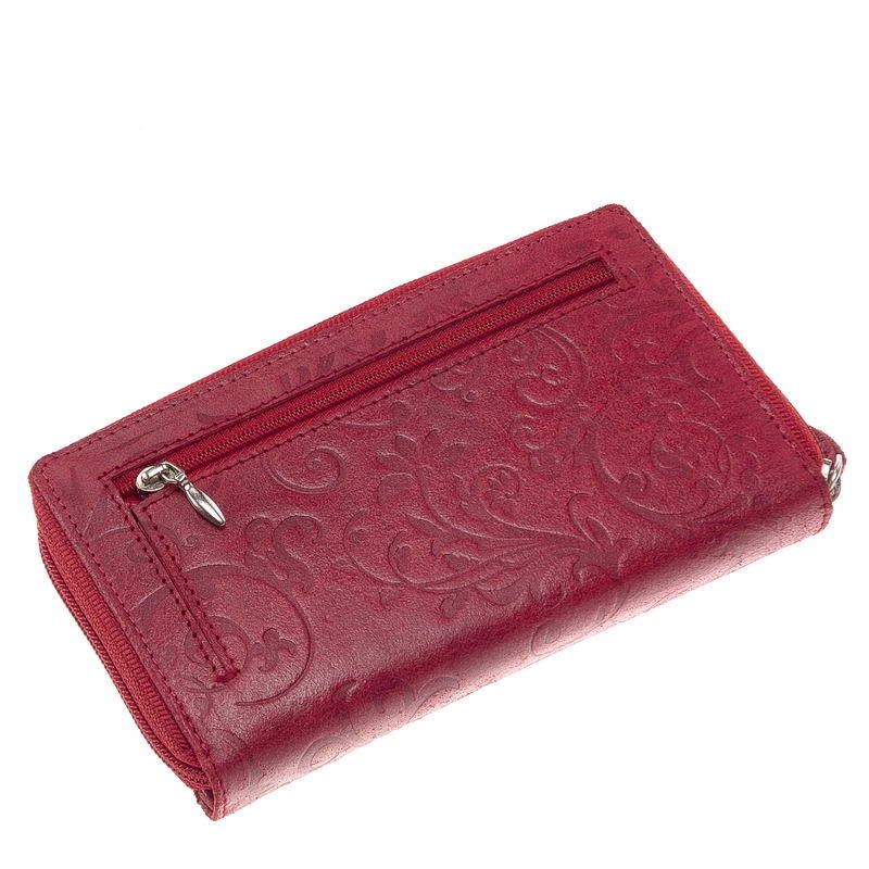 Dámská peněženka z lesklé hovězí kůže se zvláštním efektem v růžové barvě, s ozdobným úponkem a květinovým potiskem na povrchu. Část držáku hotovosti lze uzavřít zipem. S přihrádkami na spisy uvnitř. Dvojitá patentová přepínací karta, vybavená velkými přepínacími poutky a uzamykatelnými držáky souborů, vám umožňuje upravit množství produktu podle potřeby. S další kapsou na zip na zadní straně peněženky.