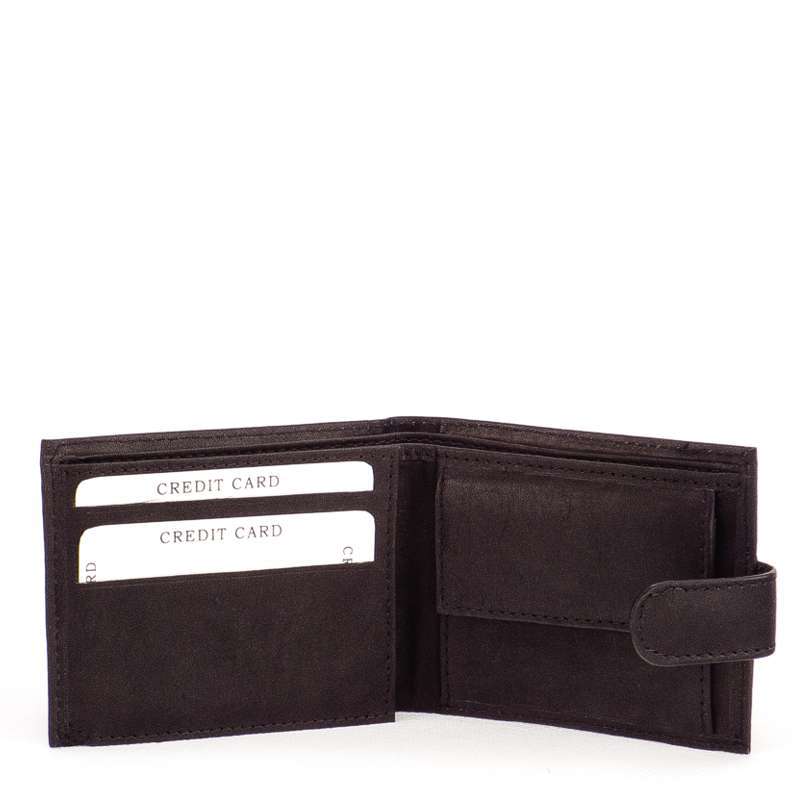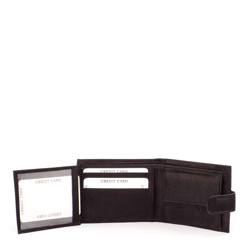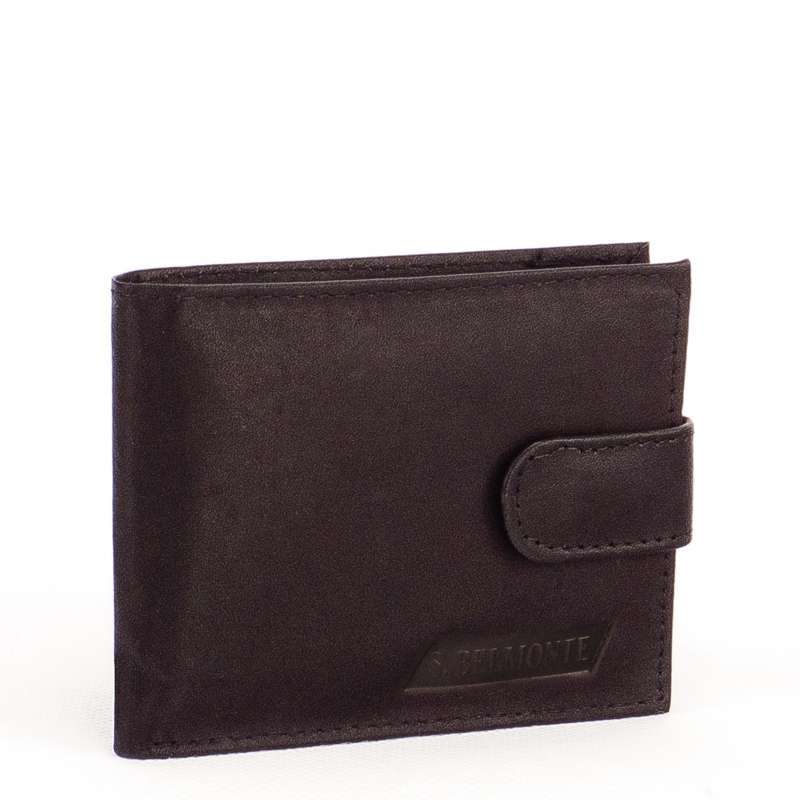 Moška denarnica iz kravjega usnja z zunanjim patentiranim stikalom in napisom S. Belmonte. Z dvema držaloma za papirni denar in enim držalom za kovance, ki jih je mogoče zakleniti. Z zložljivo kartico in vezmi v notranjosti.