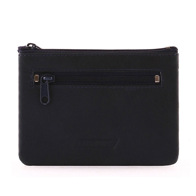 Ключодържател от телешка кожа с два пръстена за ключодържател и цип отпред. В червено, с надпис S. Belmonte в началото.