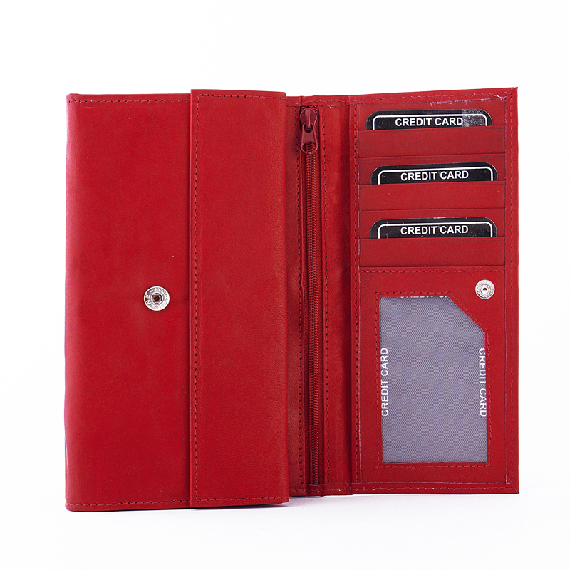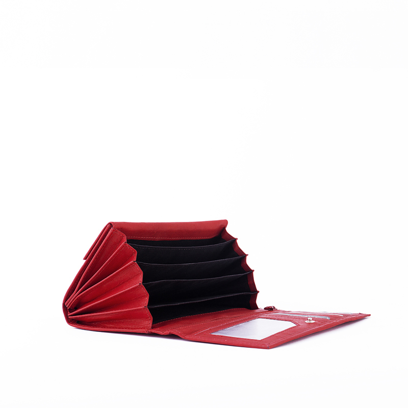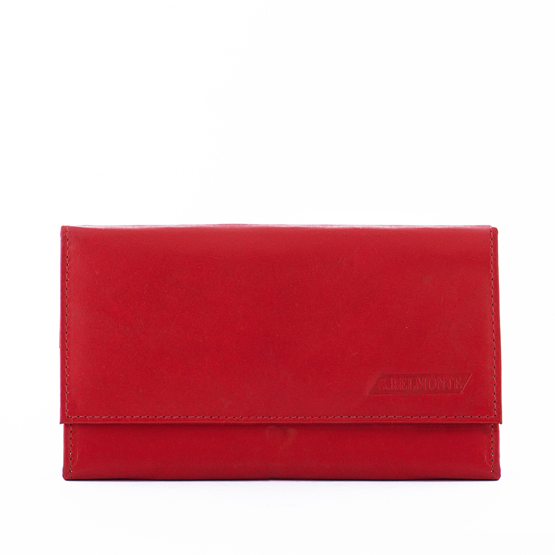 Dámska patentová peňaženka z mäkkej nappa kože s nápisom S. Belmonte. S piatimi držiakmi na papierové peniaze a jedným patentovaným uzamykateľným držiakom na mince. Vnútri držiaky kariet a súborov, z ktorých jeden je možné uzamknúť pomocou zipsu. Vonku s otvorenou priehradkou na spisy.
