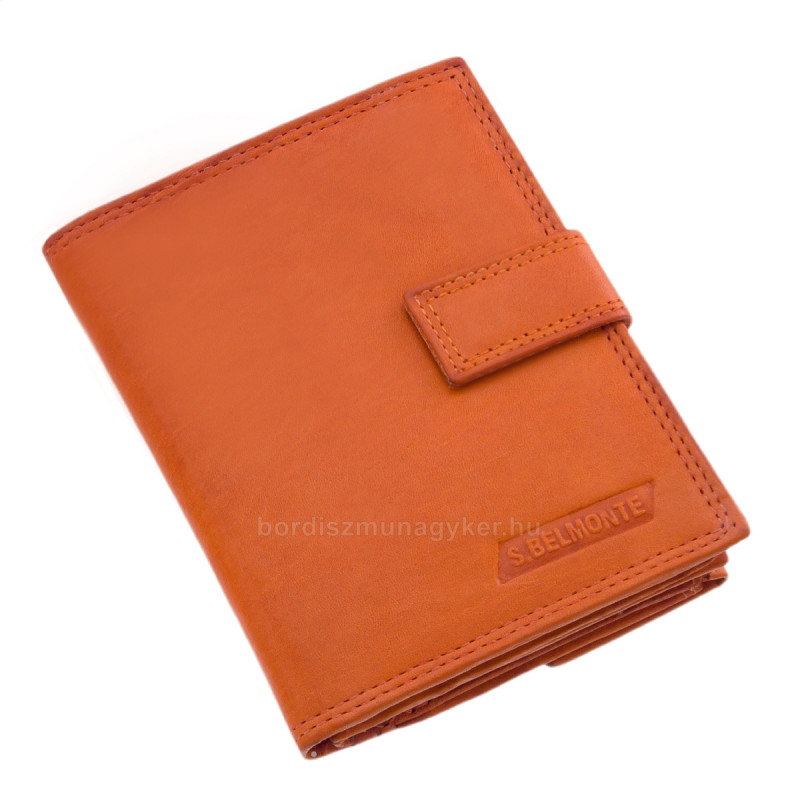 Igazi, minőségi bőrből készült, kis méretű S Belmonte márkás bőr női pénztárca, amely álló fazonú termék.