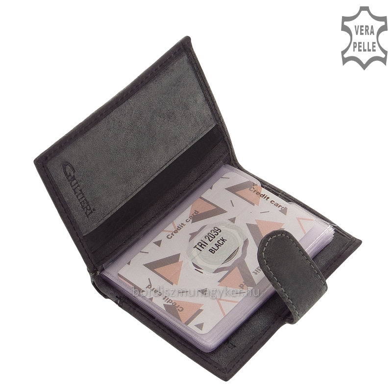 Álló kivitelezésű, többféle bőrből kikészített Giultieri bőr kártyatartó, mely számos színben megrendelhető web áruházunkban.